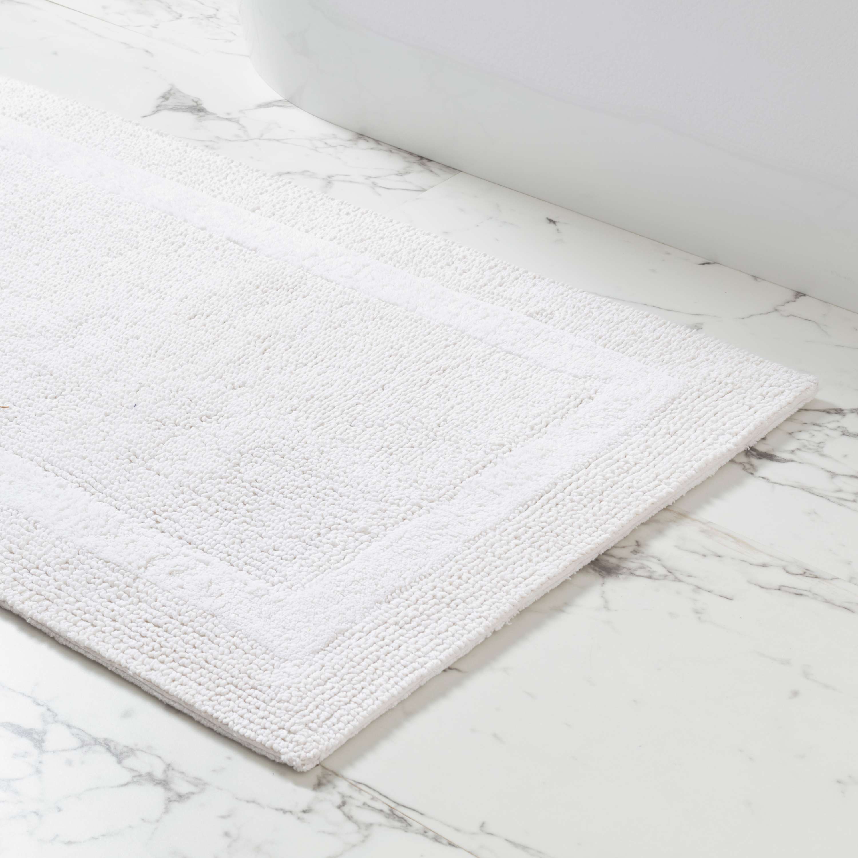 Cotton Woven Bath Rug from media.restorationhardware.com They are also available in multiple shapes if you want to revamp your bathroom. A white bathroom rug is a classic choice for any bathroom. Visit your local at home store to buy and browse more bathroom rugs & mats products. Pick up a bathroom rug to keep yourself cozy, warm, and comfy in the bathroom. Jcpenney has a wide range of white bathroom rugs from trusted names like royal velvet, liz claiborne, and jcpenney's own home. Black and white bathroom rug. Floral white bath room accessories, rugs and mats, floral bathroom decor mat. You can't go wrong with a large, vibrant rug in a serene white bathroom, says owens.